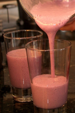 A hozzávalókat leturmixoljuk, majd az egészet eloszlatjuk két pohárban. A két egész eperszemmel díszítjük, és már kínálhatjuk is.